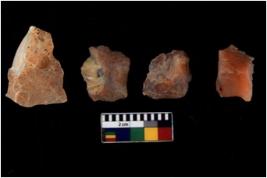 | Description / विवरण | There are n-4 of utilized flake cores. There are multidirectional irregular dominant scar pattern on both dorsal and ventral face of the cores. |