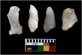 | Description / विवरण | There are n 4 utilized flake cores. There are multi directional irregular scar pattern on them. All of them are tapering at one end. |
