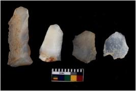 | Description / विवरण | There are n-4 of utilized flake cores. There are multidirectional irregular dominant scar pattern on both dorsal and ventral face of the cores. |