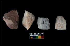 | Description / विवरण | Specimen of a cores with several broad fluted marks and some of them are tapering at one end. |