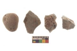 | Description / विवरण | There are n 4 utilized flakes. There are multi directional irregular scar pattern on both dorsal and ventral face of the flakes. three are sharp at one end and one has blunted edge. |