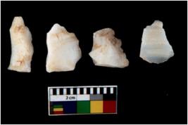 | Description / विवरण | There are n 4 utilized flake cores. There are multi directional irregular scar pattern on them. One is tapering at one end and three have blunted edges. |