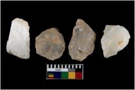 | Description / विवरण | Specimen of a cores with several broad fluted marks. The reverse bulb and platform can be seen. The flake scars are seen on all sides. |