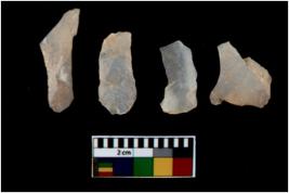 | Description / विवरण | There are n 4 utilized flake cores. There are multi directional irregular scar pattern on them. All of them are tapering at one end. |