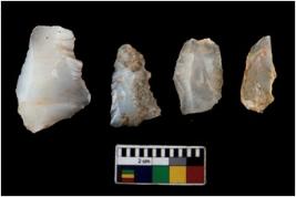 | Description / विवरण | There are n 4 ; worked utilized flakes; there are multidirectional irregular scar pattern on both dorsal and ventral face of the flakes. All are having sharp edges. |
