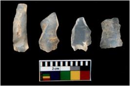 | Description / विवरण | There are n 4 utilized flake cores. There are multi directional irregular scar pattern on them. All of them are tapering at one end. |