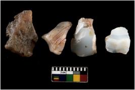 | Description / विवरण | There are n 4 ; worked utilized flakes; there are multidirectional irregular scar pattern on both dorsal and ventral face of the flakes. All are having sharp edges. |