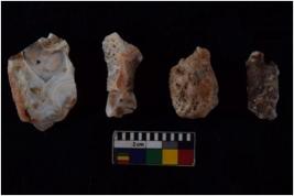| Description / विवरण | There are n 4 flake cores. All of them are fully fluted flake cores without any trace of crested ridge flakes. Some have flat base. Some have blunted edges and few have round edges. |