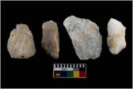 | Description / विवरण | Specimen of a cores with several broad fluted marks. The reverse bulb and platform can be seen. The flake scars are seen on all sides. |