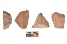 | Description / विवरण | There are n 4 utilized flakes. There are multi directional irregular scar pattern on both dorsal and ventral face of the flakes. three are tapering at one end and one has sharp edge. |