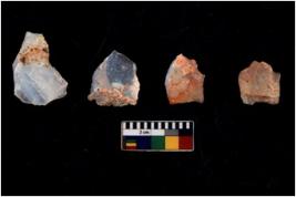 | Description / विवरण | There are n 4 cores. There are multi directional irregular scar pattern on both dorsal and ventral face of the cores. Some have blunted edges and some have round edges. |