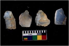 | Description / विवरण | There are n 4 of utilized worked cores and have multidirectional scar pattern. Two are tapering at one end. |