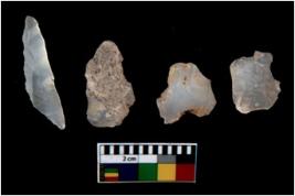 | Description / विवरण | There are n 4 utilized flake cores. There are multi directional irregular scar pattern on them. One is tapering at one end and three have blunted edges. |