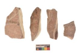 | Description / विवरण | There are n 4 utilized flakes. There are multi directional irregular scar pattern on both dorsal and ventral face of the flakes. three are tapering at one end and one has sharp edge. |