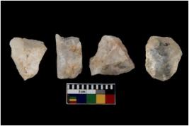 | Description / विवरण | Specimen of a cores with several broad fluted marks. The reverse bulb and platform can be seen. The flake scars are seen on all sides. |