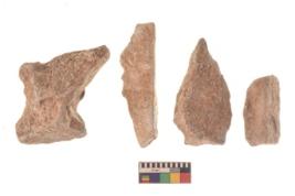 | Description / विवरण | There are n 4 utilized flakes. There are multi directional irregular scar pattern on both dorsal and ventral face of the flakes. three are sharp at one end and one has blunted edge. |