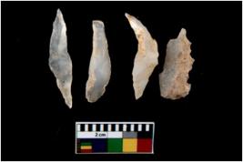 | Description / विवरण | There are n 4 utilized flake cores. There are multi directional irregular scar pattern on them. Two are tapering at one end and two have sharp edge. |