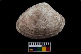 | Description / विवरण | Specimen of a large bivalve marine shell with ground edge. Probably use as spoon. |