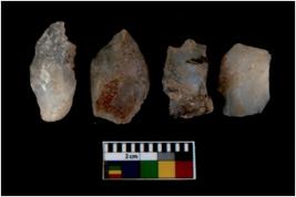 | Description / विवरण | There are n 4 utilized flake cores. There are multi directional irregular scar pattern on them. All of them are tapering at one end. |