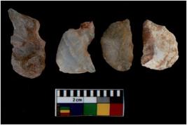 | Description / विवरण | There are n 4 utilized flake cores. There are multi directional irregular scar pattern on them. One is tapering at one end and three have blunted edges. |