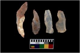 | Description / विवरण | There are n 4 utilized flake cores. There are multi directional irregular scar pattern on them. All of them are tapering at one end. |