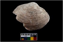 | Description / विवरण | Fragment of a bivalve shell with irregular shape. |