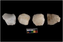 | Description / विवरण | Specimen of a cores with several broad fluted marks. The reverse bulb and platform can be seen. The flake scars are seen on all sides. |