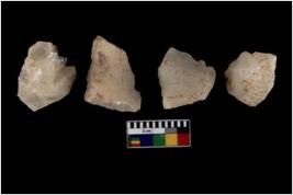 | Description / विवरण | Specimen of a cores with several broad fluted marks. The reverse bulb and platform can be seen. The flake scars are seen on all sides. |