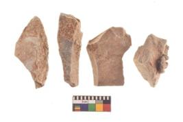 | Description / विवरण | There are n 4 utilized flakes. There are multi directional irregular scar pattern on both dorsal and ventral face of the flakes. three are tapering at one end and one has blunted edge. |