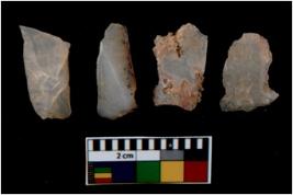 | Description / विवरण | There are n 4 utilized flake cores. There are multi directional irregular scar pattern on them. One has sharp edge and three have blunted edges. |