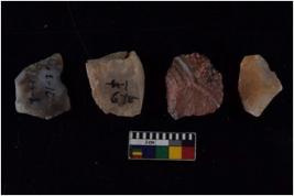 | Description / विवरण | There are n 4 flake cores. All of them are fully fluted flake cores without any trace of crested ridge flakes. Some are tapering at one end and some have sharp edges. |