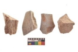 | Description / विवरण | There are n 4 utilized flakes. There are multi directional irregular scar pattern on both dorsal and ventral face of the flakes. three are tapering at one end and one has pointed edge. |