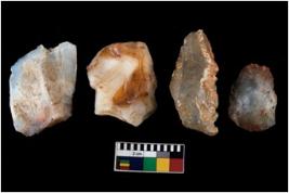 | Description / विवरण | There are n 4 ; worked utilized flakes; there are multidirectional irregular scar pattern on both dorsal and ventral face of the flakes. All are having sharp edges. |