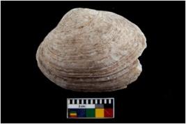 | Description / विवरण | Specimen of a large bivalve marine shell sharp edge. Probably use as spoon. |