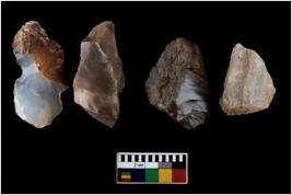 | Description / विवरण | There are n 4 ; worked utilized flakes; there are multidirectional irregular scar pattern on both dorsal and ventral face of the flakes. All are having sharp edges. |