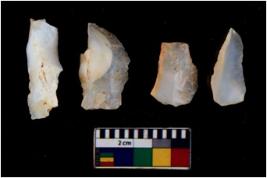 | Description / विवरण | There are n 4 of utilized worked cores and have irregular scar pattern on both dorsal and ventral sides. Three have a flat base. |