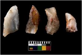 | Description / विवरण | There are n 4 ; worked utilized flakes; there are multidirectional irregular scar pattern on both dorsal and ventral face of the flakes. All are having sharp edges. |