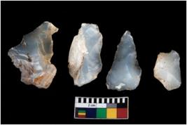 | Description / विवरण | There are n 4 ; worked utilized flakes; there are multidirectional irregular scar pattern on both dorsal and ventral face of the flakes. All are having sharp edges. |