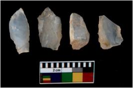 | Description / विवरण | There are n 4 utilized flake cores. There are multi directional irregular scar pattern on them. All of them are tapering at one end. |