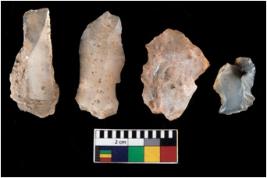 | Description / विवरण | There are n 4 ; worked utilized flakes; there are multidirectional irregular scar pattern on both dorsal and ventral face of the flakes. All are having sharp edges. |