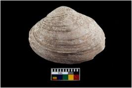 | Description / विवरण | Specimen of a large bivalve marine shell with ground edge. |