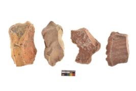 | Description / विवरण | There are n 4 of utilized worked cores and show irregular scar pattern on both dorsal and ventral side. Two have a broken tip. |