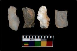 | Description / विवरण | There are n 4 utilized flake cores. There are multi directional irregular scar pattern on them. All of them are tapering at one end. |