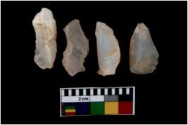 | Description / विवरण | There are n 4 utilized flake cores. There are multi directional irregular scar pattern on them. All of them are tapering at one end. |