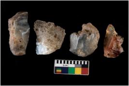 | Description / विवरण | There are n 4 ; worked utilized flakes; there are multidirectional irregular scar pattern on both dorsal and ventral face of the flakes. All are having sharp edges. |
