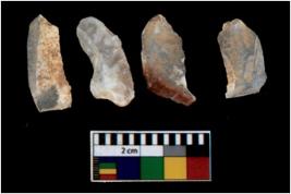| Description / विवरण | There are n 4 utilized flake cores. There are multi directional irregular scar pattern on them. All of them are tapering at one end. |