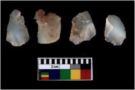 | Description / विवरण | There are n 4 utilized flake cores. There are multi directional irregular scar pattern on them. Two have blunted edges and two have round edges. |