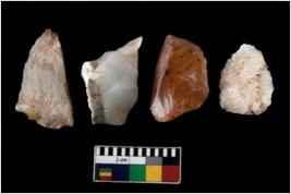 | Description / विवरण | There are n 4 ; worked utilized flakes; there are multidirectional irregular scar pattern on both dorsal and ventral face of the flakes. All are having sharp edges. |