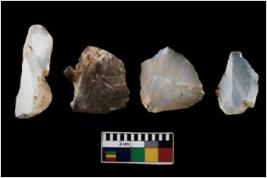 | Description / विवरण | There are n 4 ; worked utilized flakes; there are multidirectional irregular scar pattern on both dorsal and ventral face of the flakes. All are having sharp edges. |