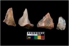 | Description / विवरण | There are n 4 ; worked utilized flakes; there are multidirectional irregular scar pattern on both dorsal and ventral face of the flakes. All are having sharp edges. |
